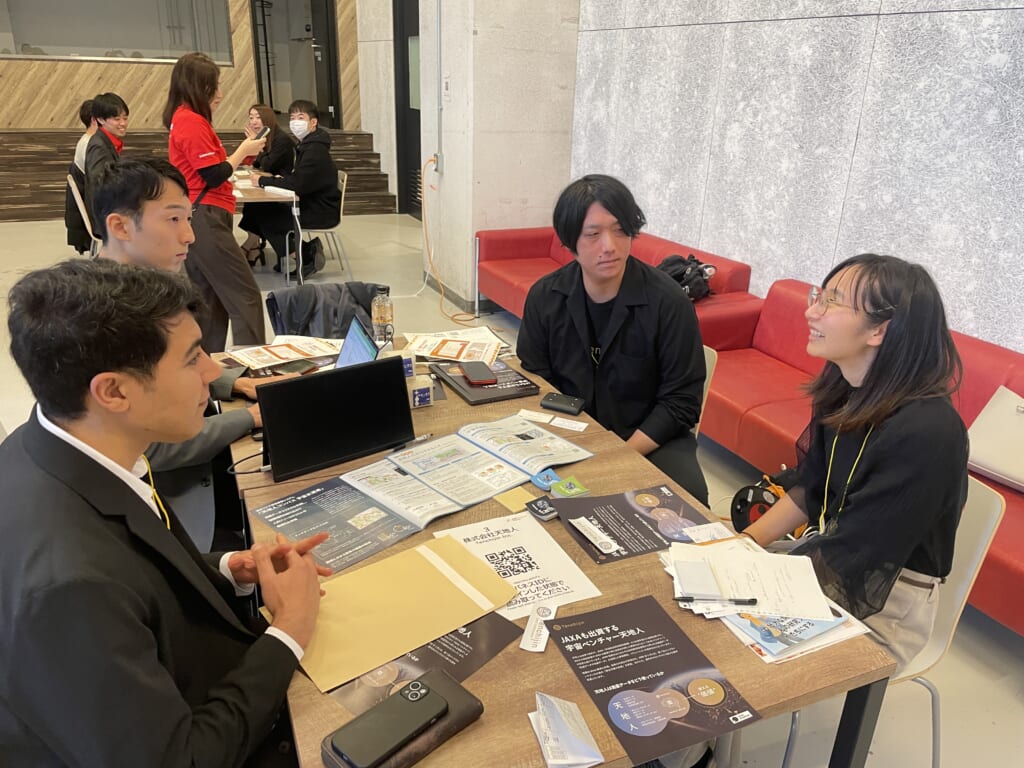 メインプログラムであるブースセッションでは、企業の経営者・研究者と参加者が向き合い、研究分野や立場の違いを越えて議論を深めました。限られた時間の中で、互いの背景や問題意識を理解し合いながら、「一緒に何ができるのか」「どのような共創に挑戦してみたいか」を語り合う、密度の高いコミュニケーションが展開されました。